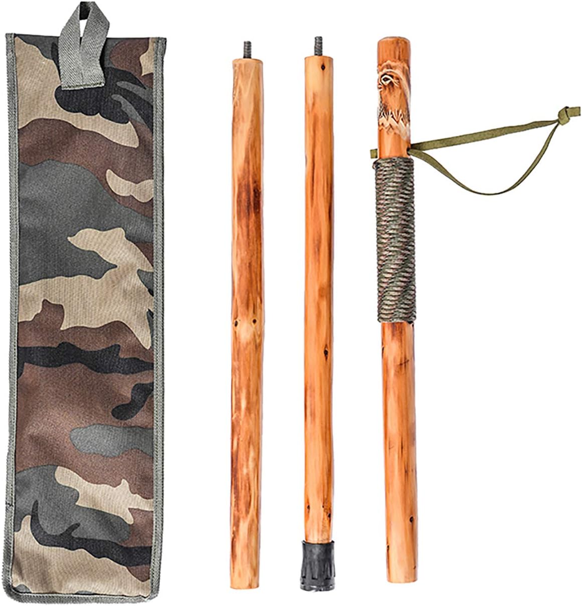 3pc Detachable Fir Wood Walking Stick for Hiking with Compass 55 Inches – with Animal Carving – Soft Hand Strap – Rubber Tip Cover