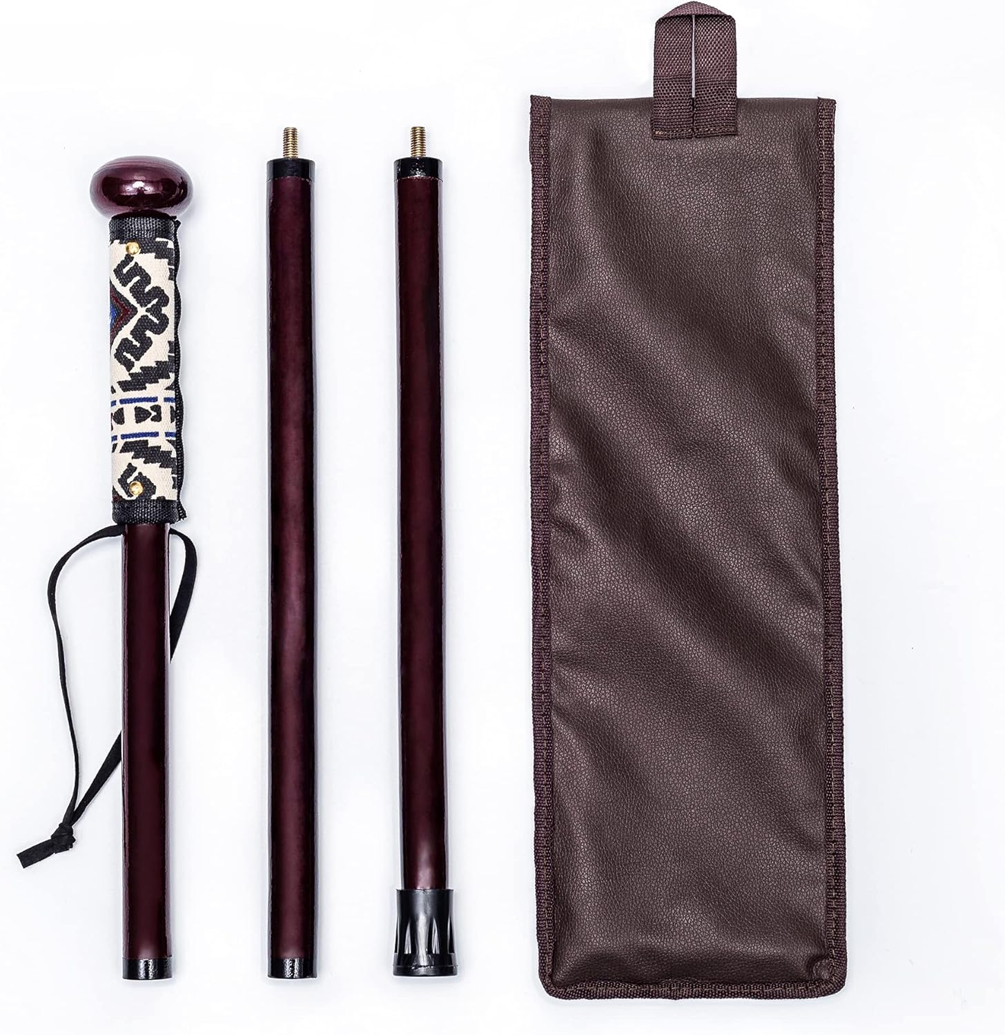 3pc Detachable Hardwood Walking Stick for Hiking with Compass 48 Inches – Soft Hand Strap – Rubber Tip Cover