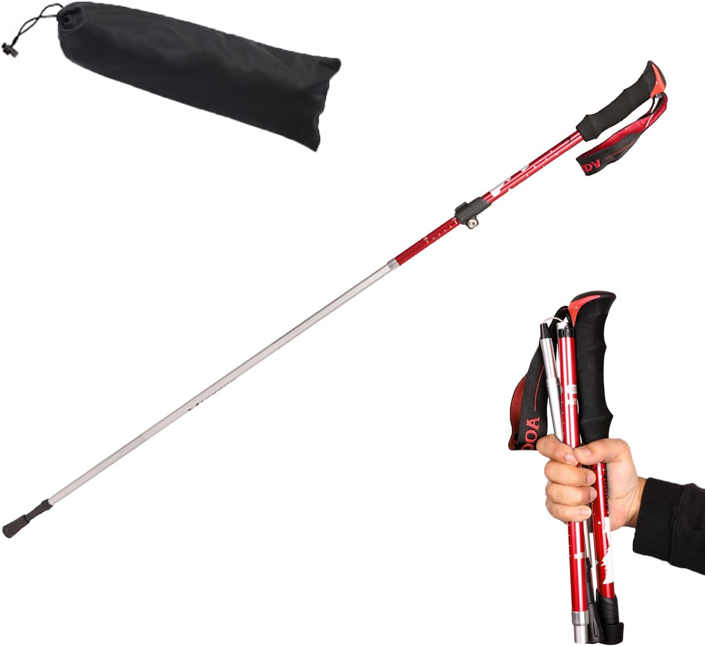 Trekking Poles, Collapsible Hiking Pole Telescopic Folding Cane Quick Lock Aluminum Alloy for Outdoor Hiking Walking Camping