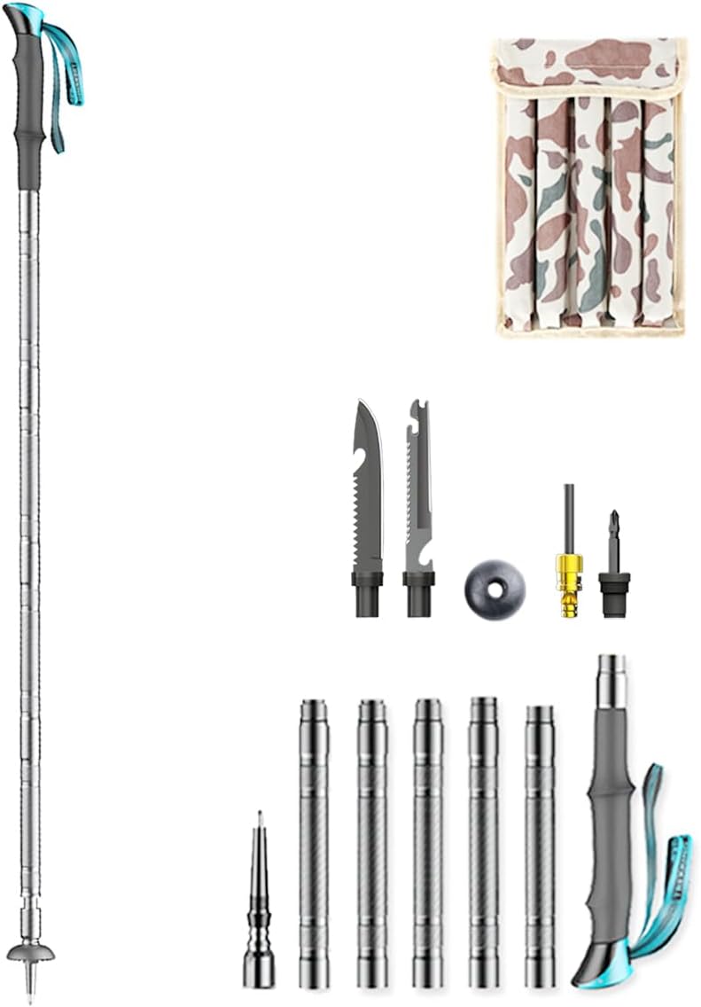 Multifunctional Trekking Pole, Lightweight 6-ction Multifunctional Folding Trekking Pole, Internal Storage Tools, Canvas Storage Bag, Easy to Carry, Suitable for Outdoor Hiking