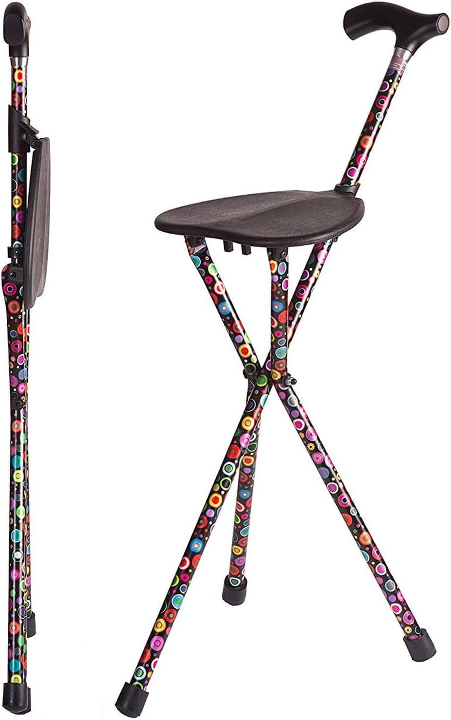 Walking Stick, Walking Cane, Cane Chair, Quad Cane and Folding Cane with at is 34 Inches Tall, FSA and HSA Eligible, Supports Up to 220 Pounds, Bubbles