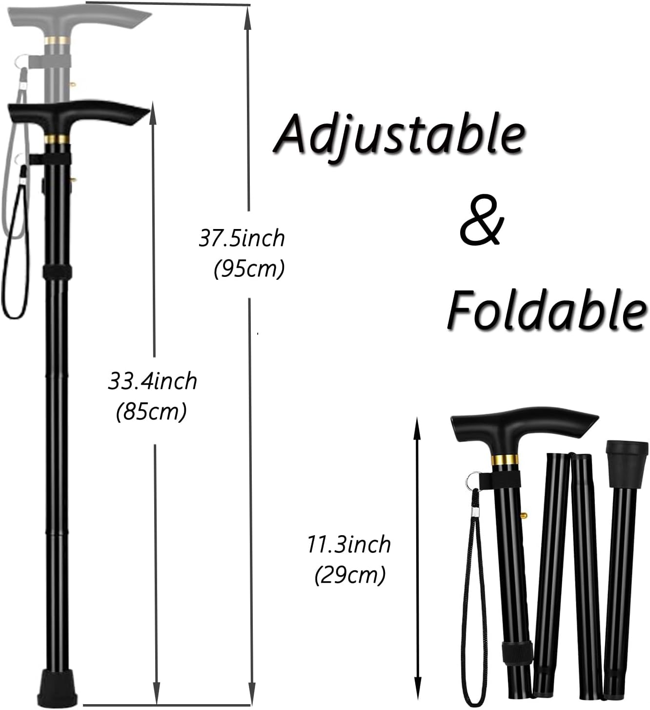 • Aluminum Alloy Walking Sticks & Foldable Anti-Slip Hiking Stick – Length Adjustable for Elderly