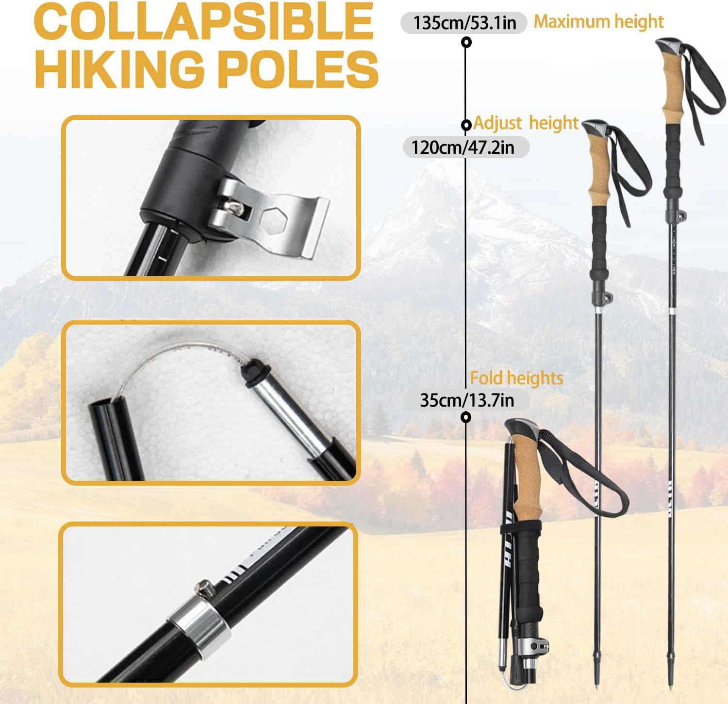 Collapsible Hiking Poles 2pc,Adjustable, Lightweight Trekking Poles 7075 Aluminium Alloy,Metal Flip Locks&Eva Foam Grips for Men Women