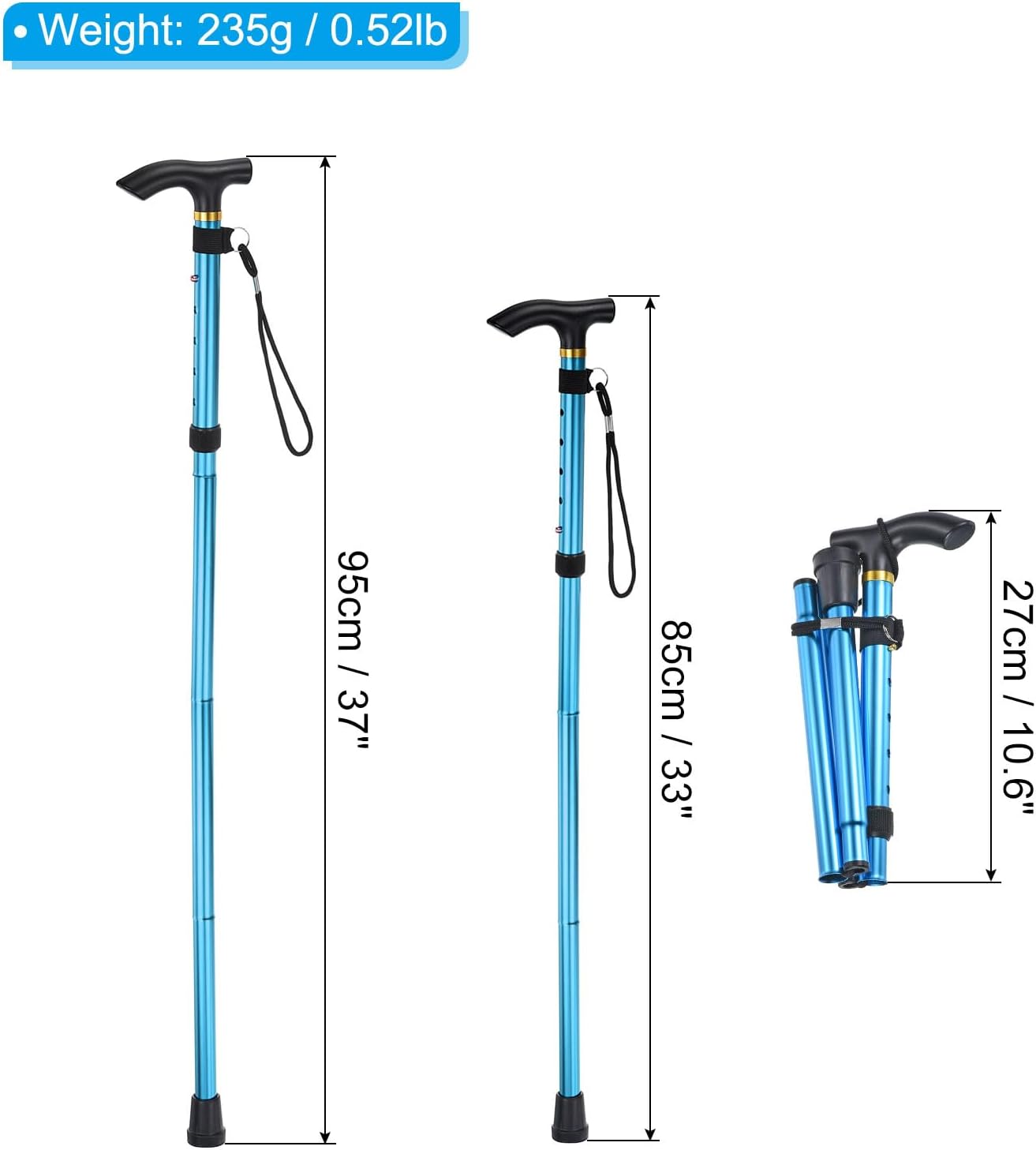 Application: This hiking pole provides 4 folding section design, adjust length range from 33″ to 37″. Suitable for backpacking, walking, hiking, camping and other outdoor activities.